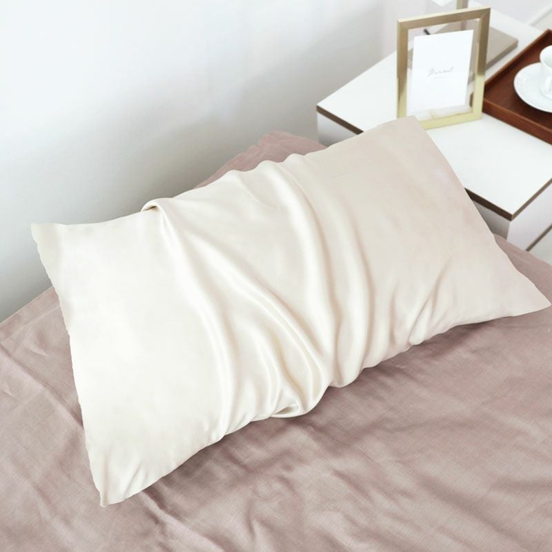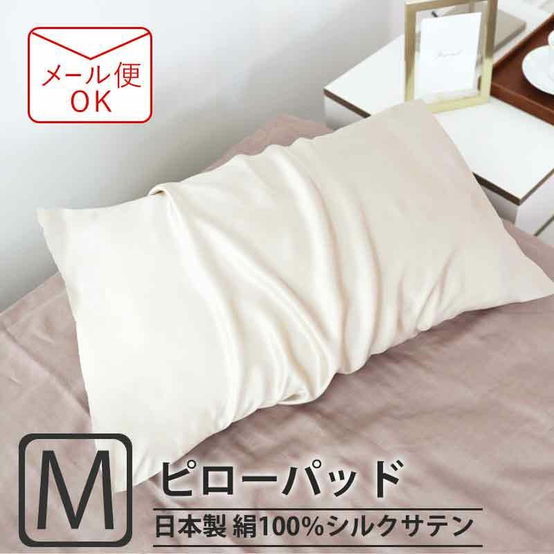枕にサッとかけるだけで使えるのでお手入れ簡単のピローパッド。つるつるすべすべな肌触りでお肌と髪の毛のケアにも。19匁で非常に軽く、夏は涼しく冬はあたたかい!機能性とすばらしいドレープ性と光沢をあわせ持つこのシルクサテンは、極上の眠りを誘います。極上の光沢でお部屋もグレードアップなシルク絹100%サテン織の日本製、全2色ピローパッドMサイズ