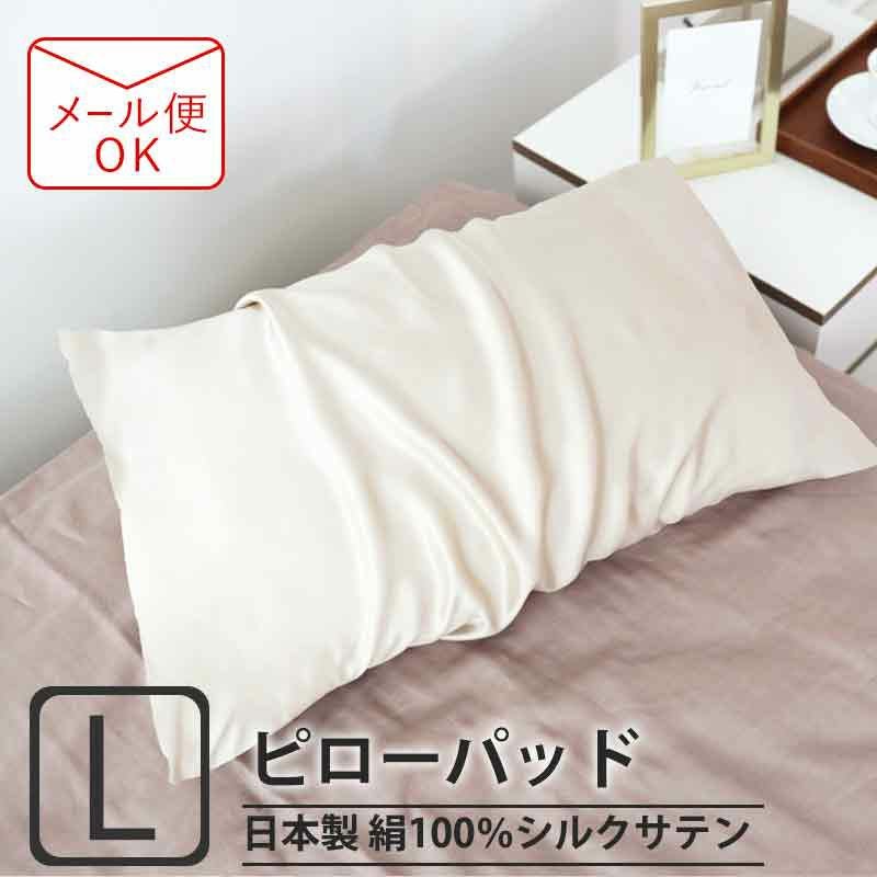 つるつるすべすべな肌触りでお肌と髪の毛のケアにも。機能性とすばらしいドレープ性と光沢をあわせ持つこのシルクサテンは、極上の眠りを誘います。枕にサッとかけるだけで使えるピローパッド。極上の光沢でお部屋もグレードアップなシルク絹100%サテン織の日本製、全2色ピローパッドLサイズ