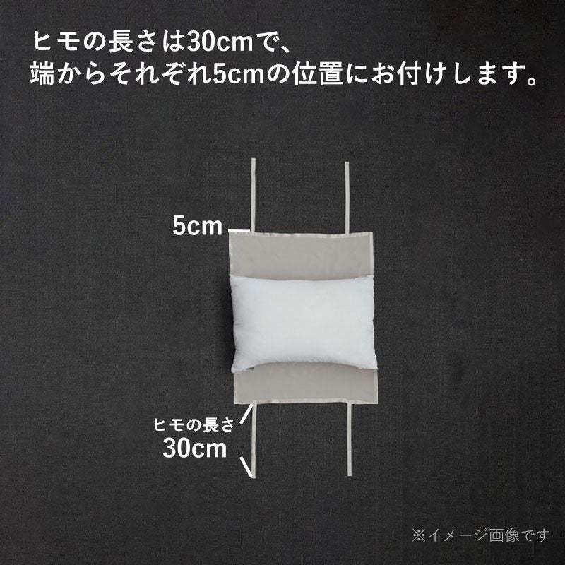 ヒモの長さは30cmで、端からそれぞれ5cmの位置にお付けします。