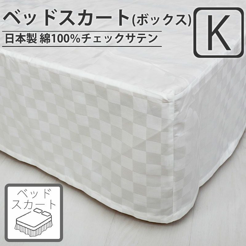 キングサイズに対応!高級ホテルのような美しいサテンチェックのベッドスカート(ボックスタイプ)。昼夜織りの落ち着いた格子柄は、シンプルで洗練された寝室を演出してくれます。綿100%、日本製