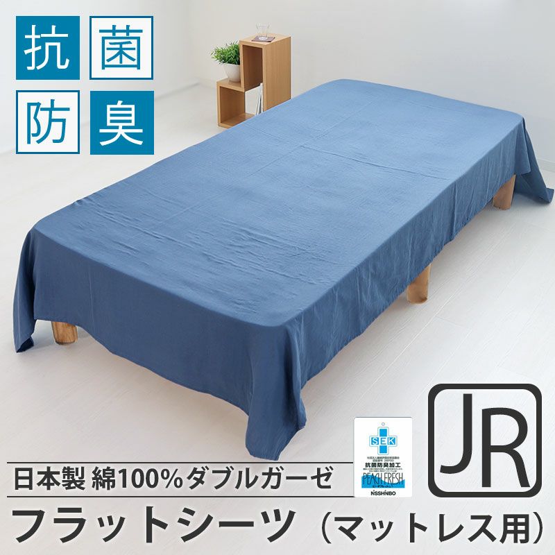 汗のニオイを元からたつ!抗菌防臭加工ピーチフレッシュ加工済 ふわふわダブルガーゼ綿100%日本製 フラットシーツ(ベッドマットレス用)