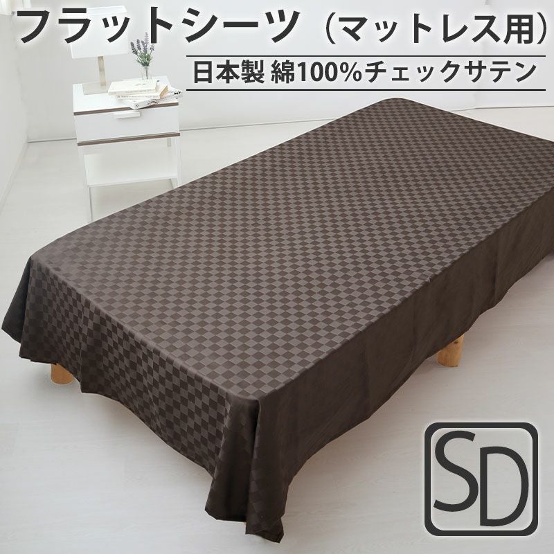 昼夜織りの上質サテンのコントラストでつくる、ホテルライクな寝室、綿100%日本製、ステイリッシュな格子柄 chess フラットシーツ(ベッドマットレス用)