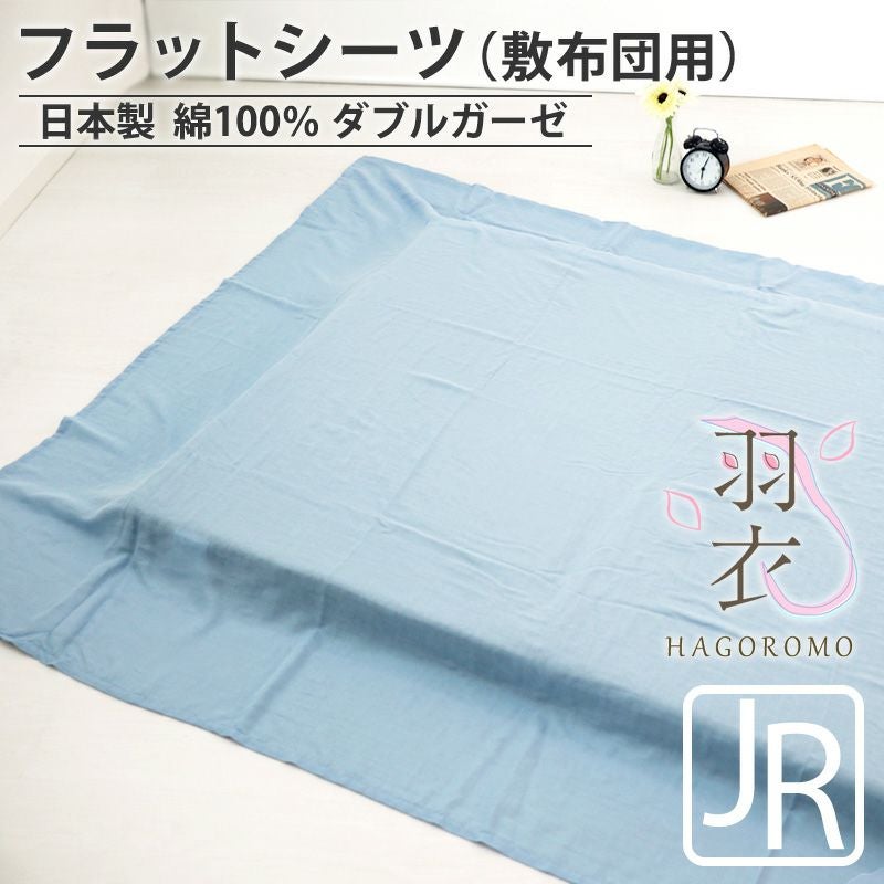 おこさまも気持ちいい柔らかでやさしい肌触り。やさしい極細の80番手糸を使用のダブルガーゼだからデリケートなお肌の方にもおすすめ!マルチカバーとして様々な用途で使える敷布団用フラットシーツのジュニアサイズ。オーガニックコットン100%でとっても優しい。安心の日本製