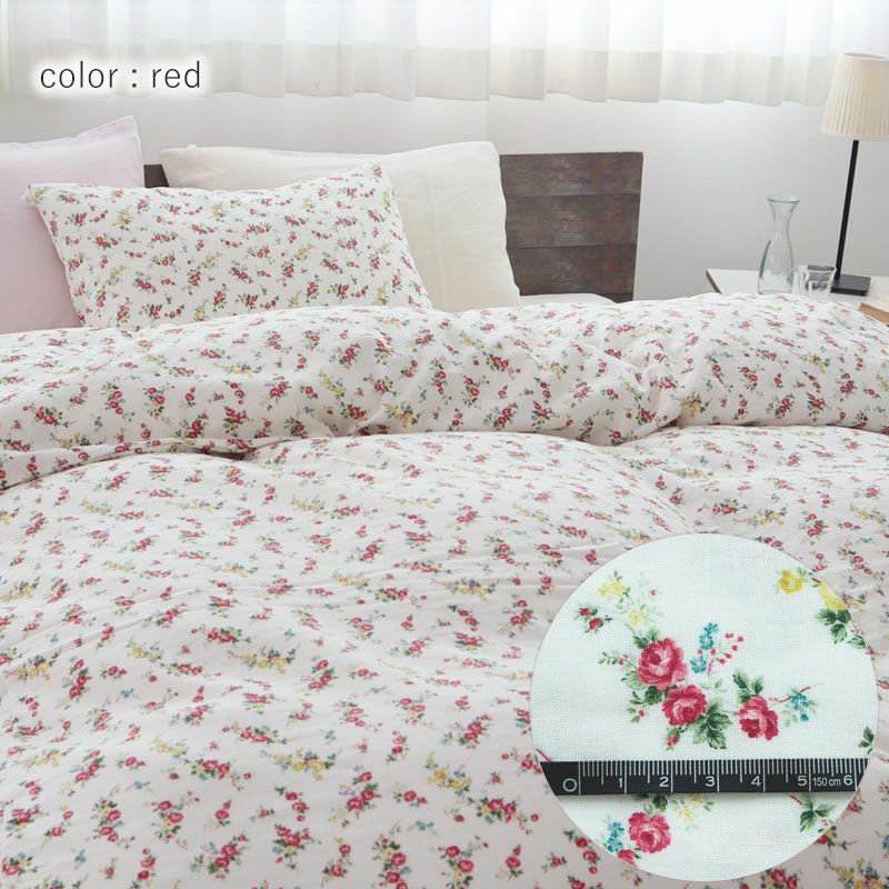 ほどよいバランスで深みとかわいらしさを併せ持つ上品なローズ柄。お布団カバー、シーツとしてはもちろんクッションカバーで取り入れてインテリアとしてもお部屋になじみ、気分はまるで西洋のよう。また、ふわふわでやわらかいダブルガーゼで包み込まれるほどにこころも身体にも癒しを与えるガーゼ生地です。