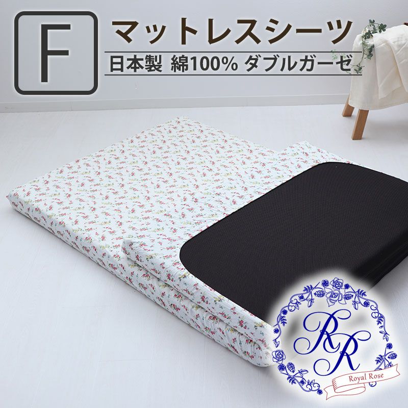 寝室が一気に華やかになるエレガントなローズ柄は、汚れも目立ちにくく、洗うたびふっくらふわふわな心地よさ!綿100%ダブルガーゼのマットレスシーツファミリー。日本製