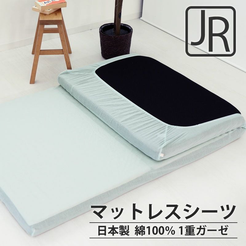 兄弟姉妹でお揃いにもしたいカラーバリエーション!しなやかでサラッとしたやさしい肌触りの細番手オーガニックコットン100%使用した高品質な一重ガーゼのマットレスシーツジュニアサイズ。夏以外も一年中快適に。日本製