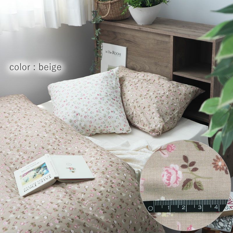 空間にパッと華を添える小花柄でお部屋の主役に、ピンクのお花をメインにそれぞれのカラーに合わせた配色で。シングルサイズ以上は片側にハギが入りますが、柄合わせは致しておりません。