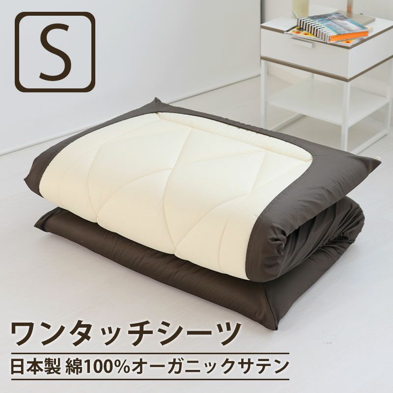 オーガニックコットン、超長綿100%でコットンなのにまるでシルクのよう。日本製、インドオーガニックサテンBijour(ビジュー)。裏ゴムなので脱着楽々 ワンタッチシーツシングル
