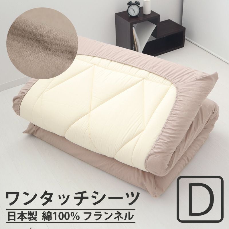ひとりでも着脱がラクチン♪綿100%の優しい暖かさとお部屋に馴染む落ち着いたカラー展開。冬におすすめの微起毛加工であたたかいコットンフランネルワンタッチシーツのダブルサイズ。安心の日本製