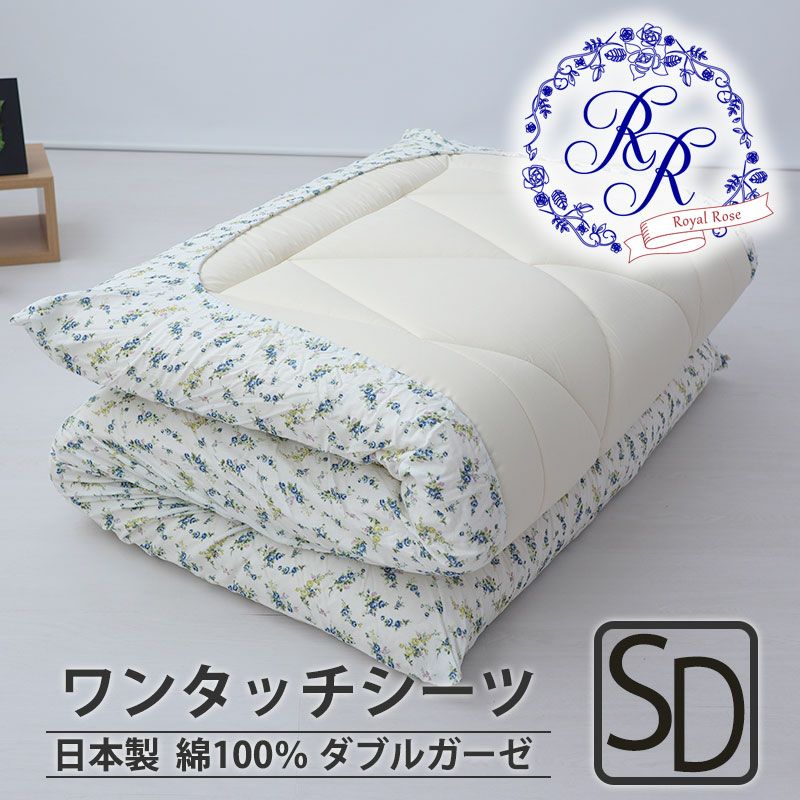 洗うたび、ふっくらふわふわな心地よさ!汚れが目立ちにくい柄のデザインで、優美なローズ柄が寝室を一気に華やかに!綿100%ダブルガーゼのワンタッチシーツセミダブル。日本製