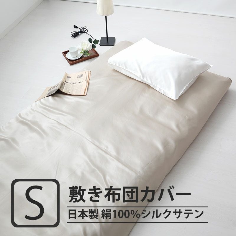 極上の光沢でお部屋をグレードアップ。毒素排出・美肌効果となめらかな肌触りが心地よいシルク絹100%サテン織の日本製、全2色敷き布団カバーシングル