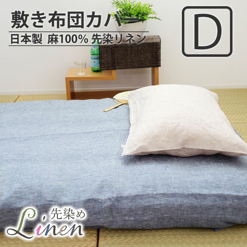 ひんやり涼しい麻(リネン)100%の敷き布団カバーダブルサイズ。麻特有のシャリ感を残しつつ、クールクラッシュ加工でソフトで柔らかい仕上がりの60先染めフランスリネンは暑い夏に特におすすめ!安心安全の日本製!!