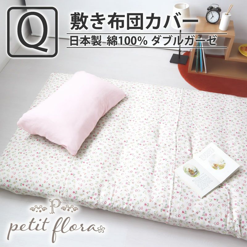 お肌が弱い方にも安心してお使いいただけるダブルガーゼからフレンチカジュアルなテイストの花柄が登場いたしました。お部屋に馴染みやすい小さな花柄の日本製敷き布団カバークイーンサイズです。
