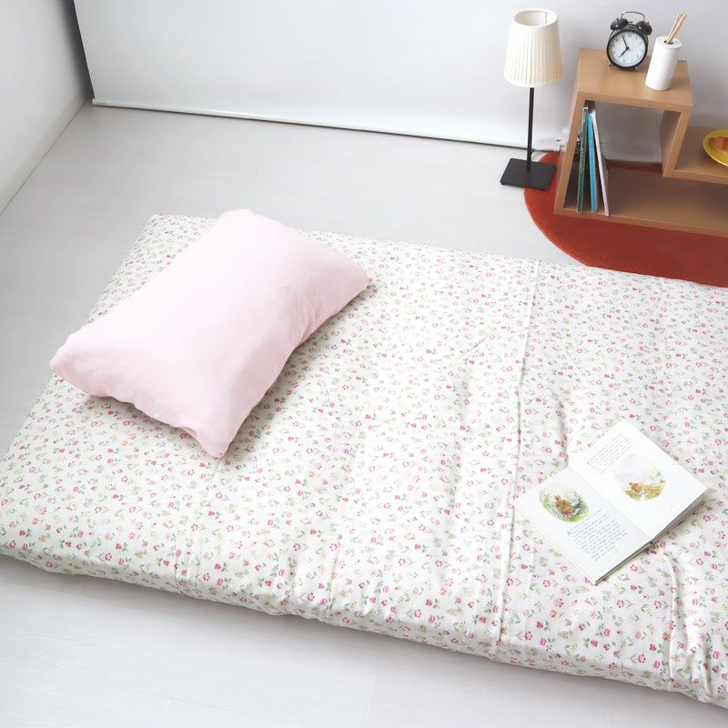 空間にパッと華を添える小花柄でお部屋の主役に、ピンクのお花をメインにそれぞれのカラーに合わせた配色で。シングルサイズ以上は片側にハギが入りますが、柄合わせは致しておりません。