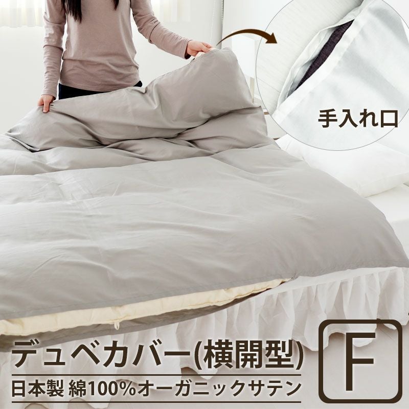 美しい光沢と艶やかさのあるインドオーガニック超長綿サテンBijour(ビジュー)で高級感のある寝室に。家族みんなの大きなお布団でも横開型のデュベカバーはセッティングが簡単で、ホテルや旅館でも使用されています。超長綿100%、日本製のファミリーサイズ。