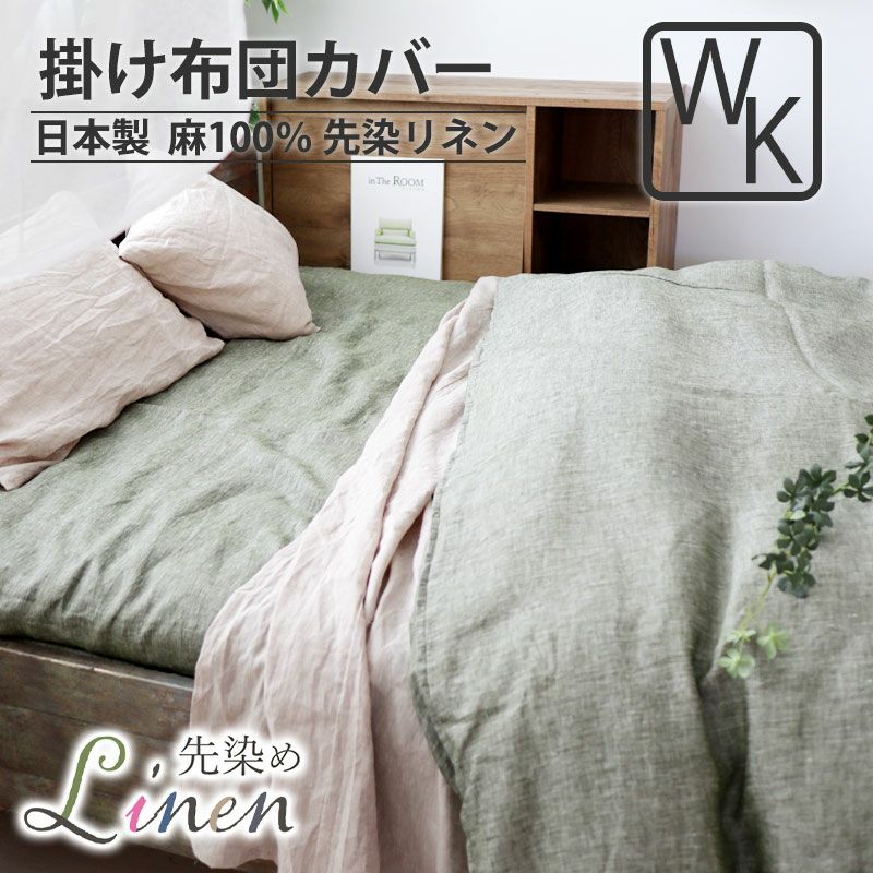 麻(リネン)100%使用の掛け布団カバーワイドキングサイズ。麻特有のシャリ感を残しつつ、ソフトで柔らかな60先染めフランスリネン。触れるとひんやり涼しいので、暑い夏に特におすすめです。安心安全の日本製です。