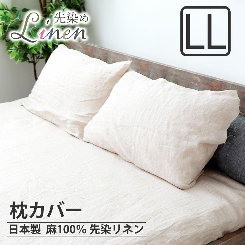暑い夏に特におすすめの60先染めフランスリネンは麻特有のシャリ感を残しつつ、クールクラッシュ加工でソフトで柔らかい仕上がり!ひんやり涼しい麻(リネン)100%の枕カバーLLサイズ。安心安全の日本製です。