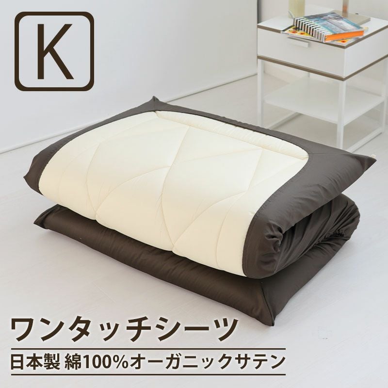 オーガニックコットン、超長綿100%でコットンなのにまるでシルクのよう。日本製、インドオーガニックサテンBijour(ビジュー)。裏ゴムなので脱着楽々 ワンタッチシーツキング
