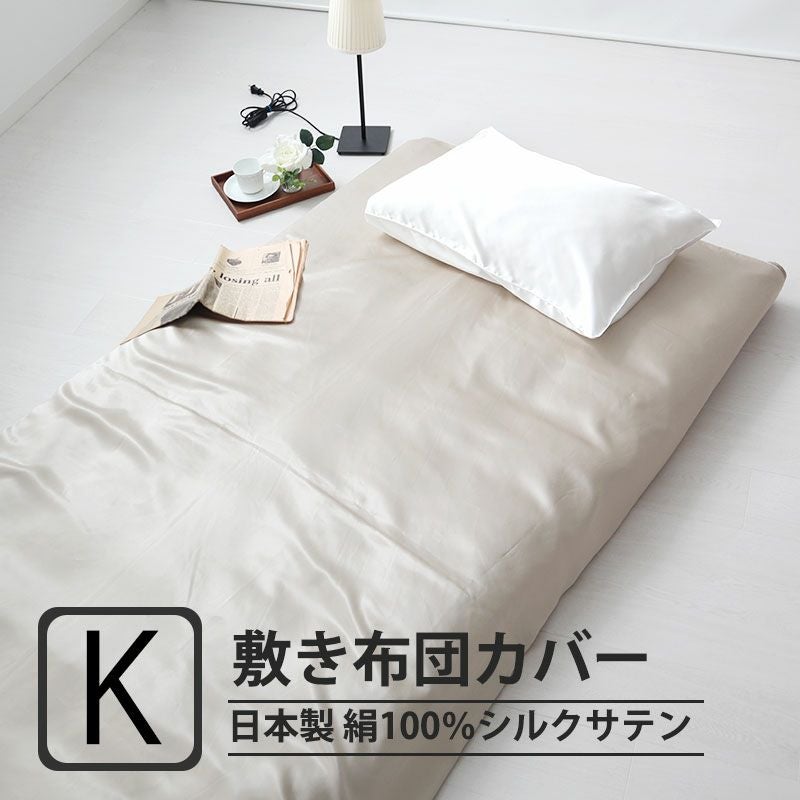 美肌効果・毒素排出となめらかな肌触りが心地よい!お部屋のグレードアップを極上の光沢で!シルク絹100%サテン織の日本製、全2色敷き布団カバーキング
