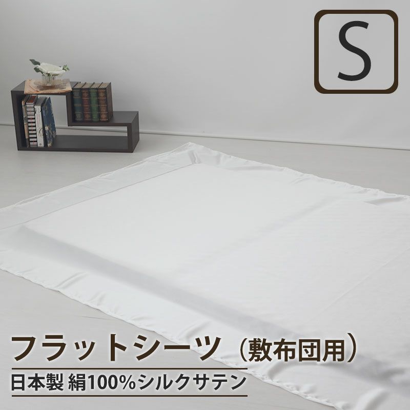 極上の光沢でお部屋をグレードアップ。毒素排出・美肌効果となめらかな肌触りが心地よいシルク絹100%サテン織の日本製、全2色フラットシーツ敷き布団用シングル