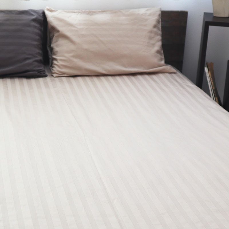 一般的に使用する40番糸より細くて長い60番手の長繊維綿を使用するので柔らかく滑らかで肌にほどよくフィット。細い糸をつくるためには原料となる綿花の繊維が長いものを使う必要があり、長ければ長いほど、品質が高く、安定したものになります。ワンランク上の空間を演出するサテンストライプ-Ray-で贅沢なひとときをお過ごしください。