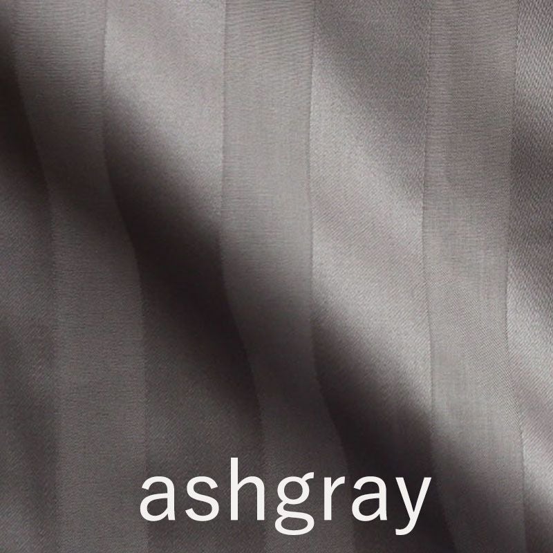 特別感を雰囲気を演出するサテン織り(朱子織)は経糸と偉糸の交差する点をなるべく目立たぬように、さらにところどころを長く浮かせた織り方をすることで、平織などと比べ、光沢が出るので、ホテルのパジャマやリネンでよく使用されています。サテン織りとローン(平織)の幅をかえて、交互に織り上げたリズミカルなストライプは、光の加減によって複雑にみえ、大変高級感があるのでモダンでシンプルな雰囲気をもたらすサテンストライプ-Ray-です。