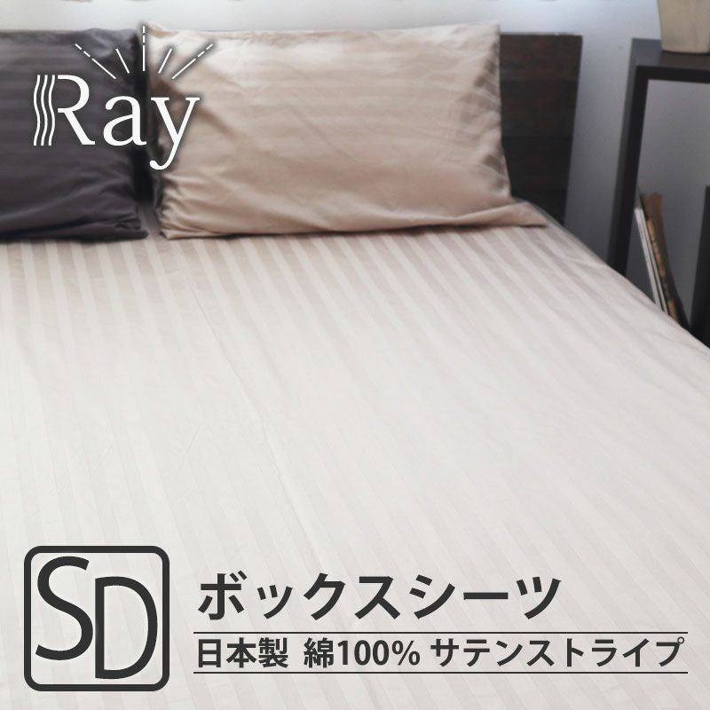 滑らかな肌触りのサテンストライプ-Ray-ボックスシーツセミダブルサイズ。モダンシンプルなインテリアにも映える!綿とは思えない光沢と美しさを放ちます!日本製 綿100%