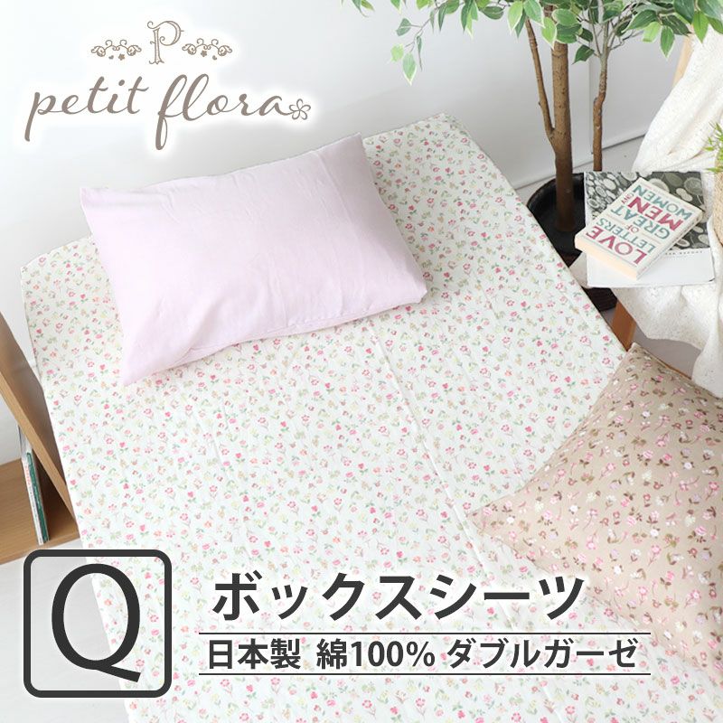 フレンチカジュアルなテイストでかわいい花柄ダブルガーゼ生地でマットレス用フラットシーツクイーンサイズをご用意しました!綿100%ガーゼのふんわりとした肌触りとお花柄で癒される♪1枚仕立てのシーツで装着もマットレスの下に挟み込むだけで簡単!
