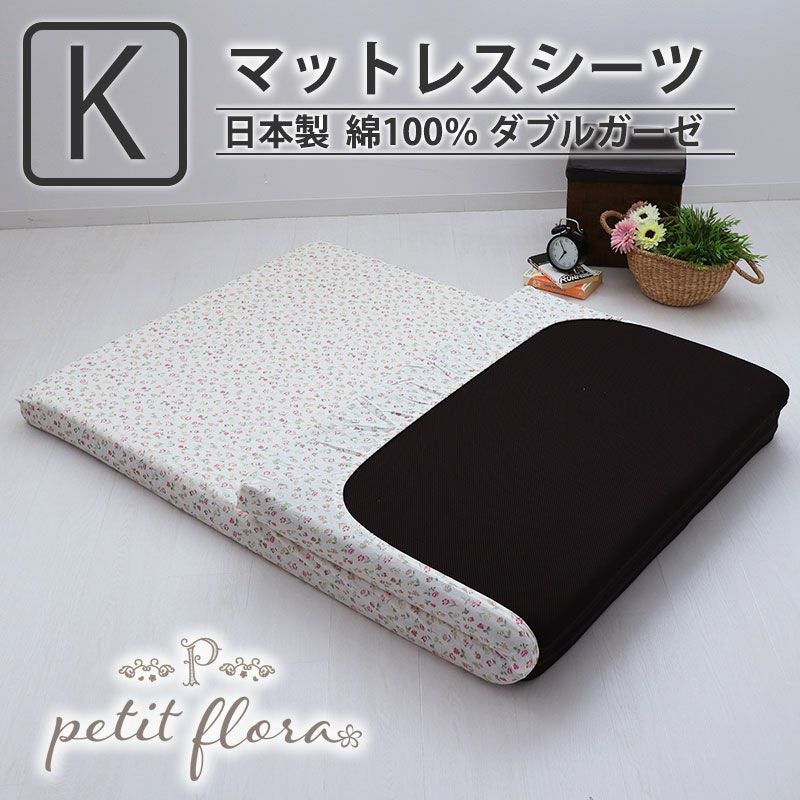 フレンチカジュアルなテイストでかわいい花柄ダブルガーゼ生地でマットレス用フラットシーツキングサイズをご用意しました!綿100%ガーゼのふんわりとした肌触りとお花柄で癒される♪1枚仕立てのシーツで装着もマットレスの下に挟み込むだけで簡単!