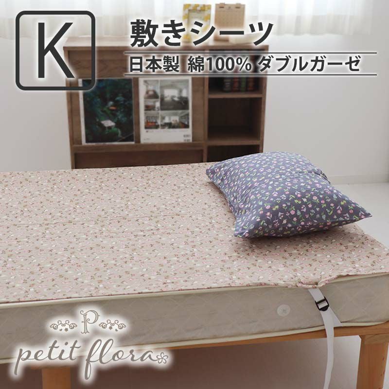 フレンチでカジュアルな花柄ダブルガーゼの敷きシーツキングサイズ。四隅ゴムで着脱楽々!綿100%でふんわり柔らかい肌触り。1cm単位でお作り可能です。