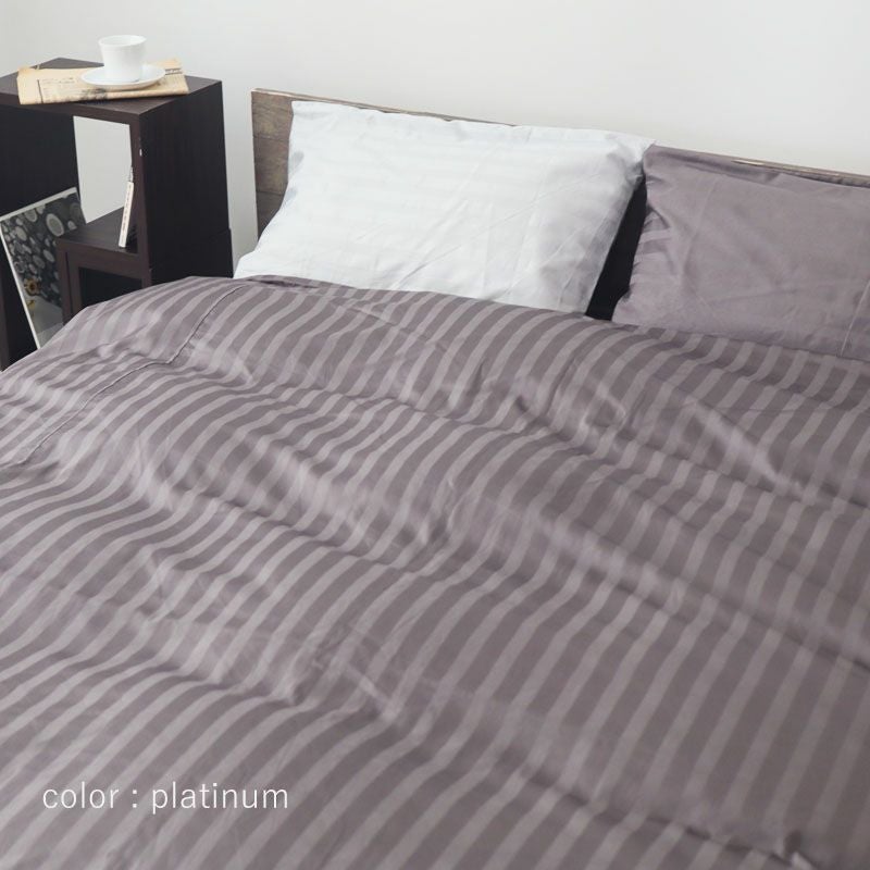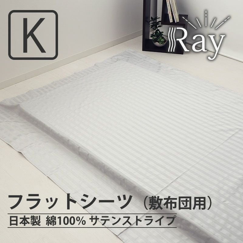 綿100%で安心安全の日本製!サテンストライプ-Ray-のフラットシーツ敷き布団用キングサイズ!美しさと滑らかな肌触りは綿とは思えない光沢と高級感!モダンシンプルなインテリアにも映えます!