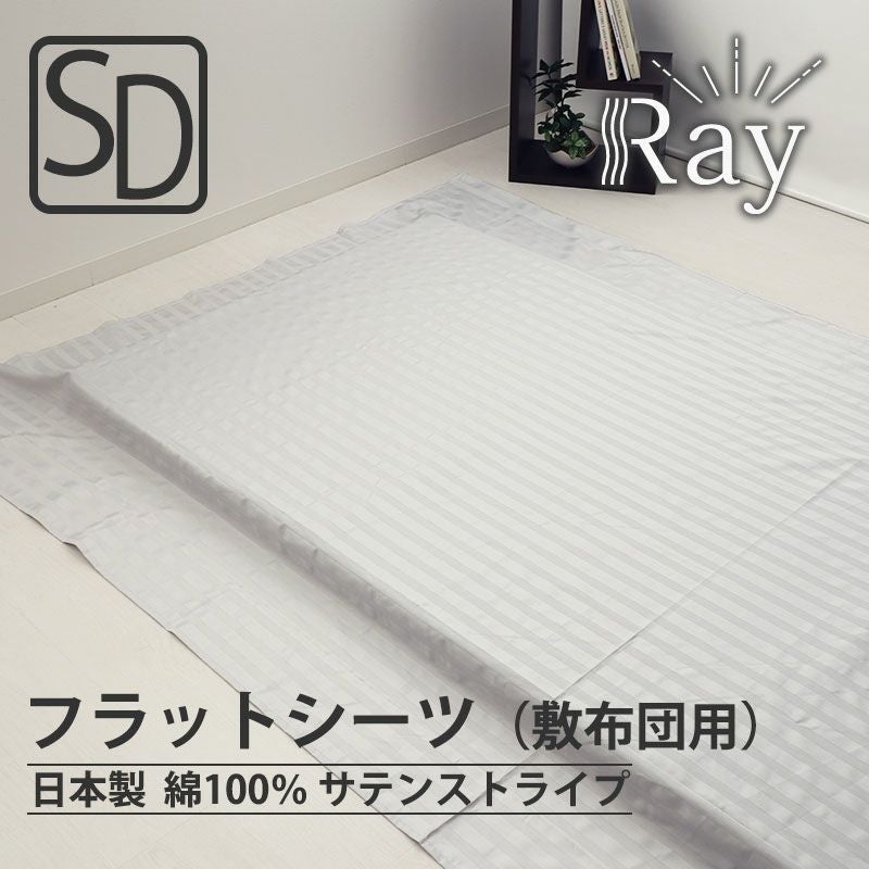サテンストライプ-Ray-は綿とは思えない光沢と高級感!美しさと滑らかな肌触りのフラットシーツ敷き布団用セミダブルサイズ!モダンシンプルなインテリアにも映えます!日本製 綿100%