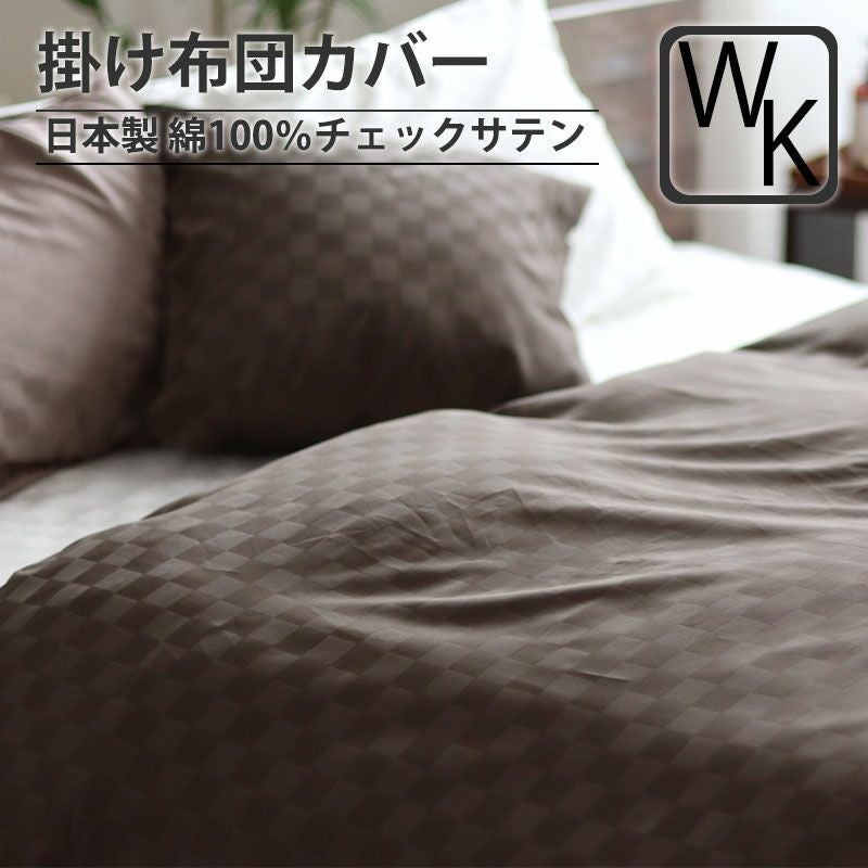 昼夜織りの上質サテンのコントラストでつくる、ホテルライクな寝室、綿100%日本製、ステイリッシュな格子柄 chess掛け布団カバー