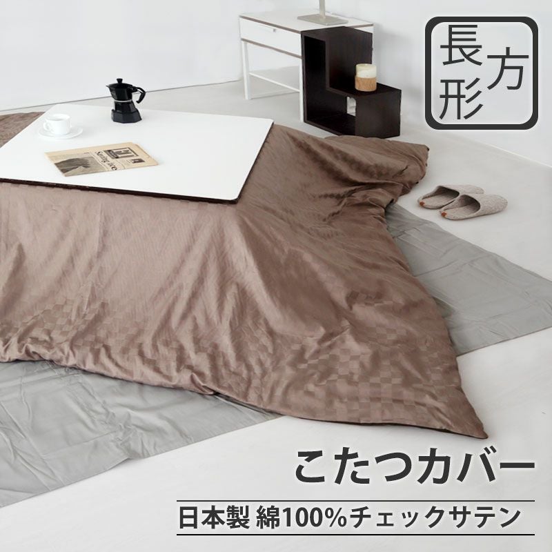 ホテルライクなこたつにステイリッシュな格子柄、昼夜織りの上質サテンのコントラストでつくる、綿100%日本製、 chess こたつ掛布団カバー長方形
