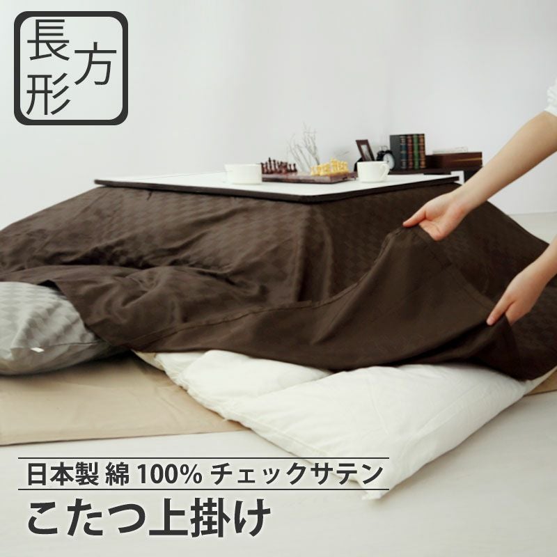 昼夜織りの上質サテンのコントラストでつくる、ホテルライクなこたつに、綿100%日本製、ステイリッシュな格子柄 chess こたつ上掛け長方形
