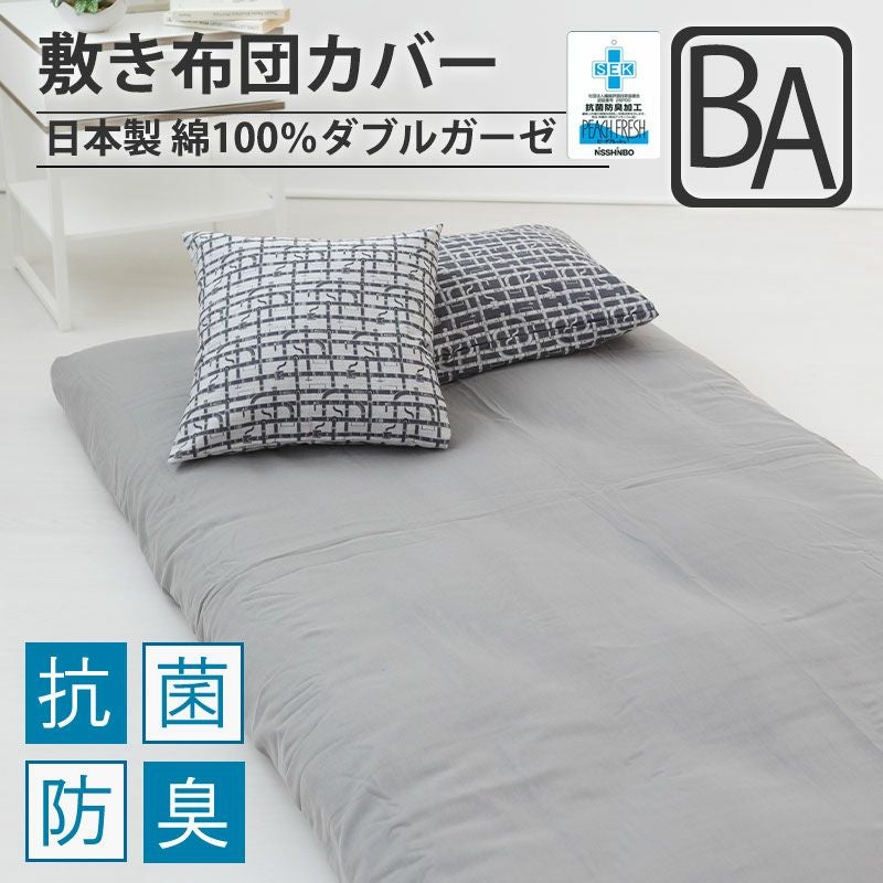 赤ちゃんにおすすめの柔らかな肌触りのダブルガーゼのベビーサイズの敷き布団カバーです!抗菌加工付きで清潔にお使いいただけるので、お母さんも安心の嬉しい素材です。