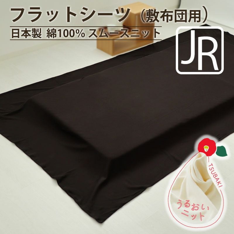 汗っかきさんにもおすすめ、日本製フラットシーツ敷き布団用ジュニア・セミシングルサイズ!柔らかくしっとりとした肌触りであたたかく安らぐスムースニット。オーガニックコットン100%で吸放湿性もよく、寝ている間もお肌をいたわります。