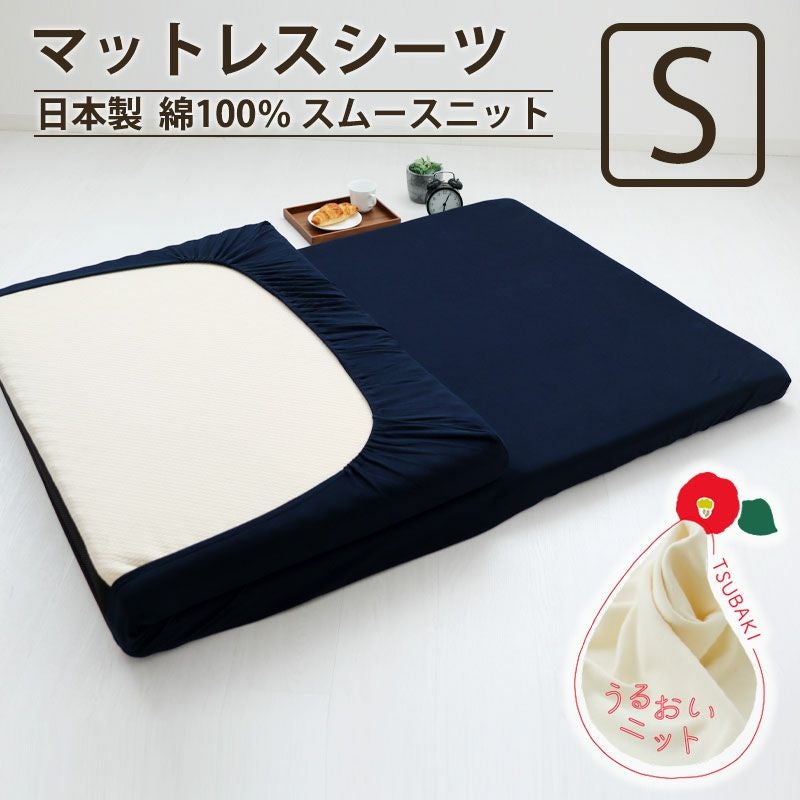 肌触りの良いのびのびスムースニットのマットレスシーツシングルサイズ。オーガニックコットン100%使用でしっとりと保湿力があり、空気やお肌が乾燥する時期におすすめ日本製シーツです。