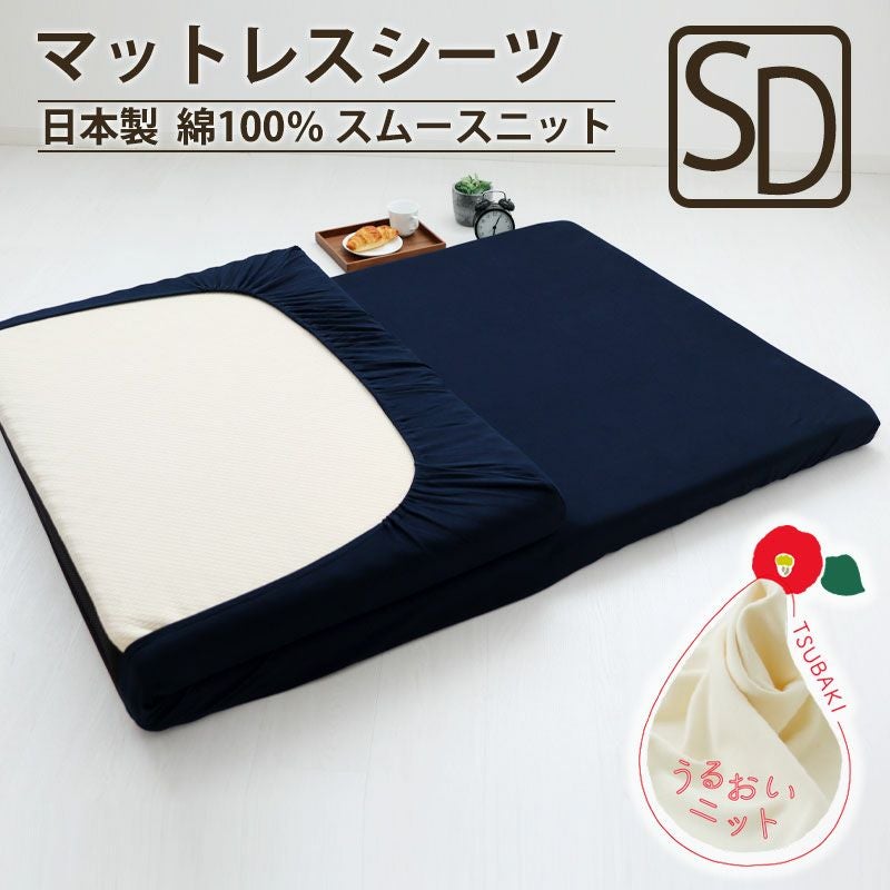 天然繊維、綿100%なので、汗をかいても快適なセミダブルサイズの日本製マットレスシーツ。伸縮性も良く、吸放湿性も高い、しっとりあったかなスムースニットで、寒い冬も快適に。