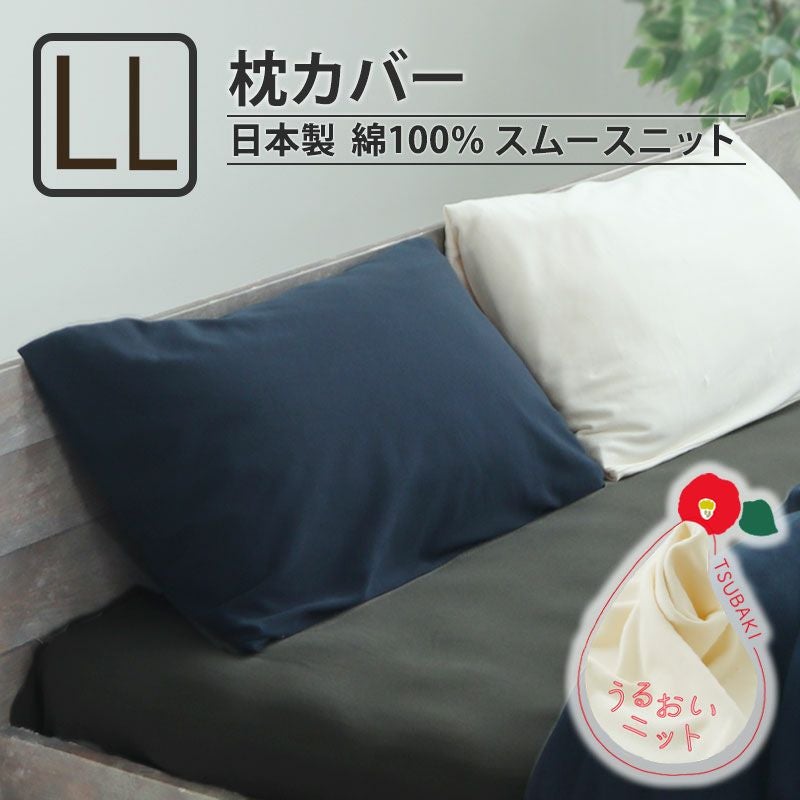 保湿力としっとりとした肌触りを実現し、髪とお肌にやさしい美容ニット!椿油・植物由来エキス配合の綿100%使用の40オーガニックコットン枕カバーLLサイズ。日本製