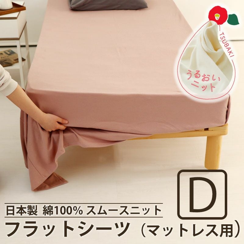 のびのびフラットシーツベッドマットレス用ダブルサイズ。天然繊維であるオーガニックコットンを100%使用した、なめらかで保湿力のあるスムースニット。吸放湿性もよく、汗をかいても朝まで快適。