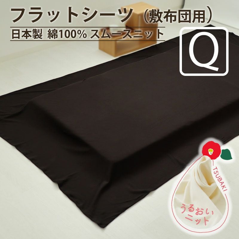 椿油、植物由来エキス配合の柔らかい肌触りのしっとり保湿ニット。マルチカバーなど様々な使い方ができるフラットシーツ敷き布団用クイーン・ワイドダブルサイズ。オーガニックコットン100%、日本製シーツ