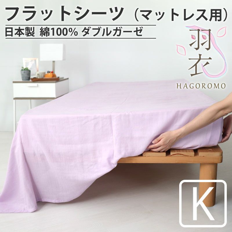 デリケートなお肌の方にもおすすめのオーガニックコットンダブルガーゼ生地のマットレス用フラットシーツのキングサイズです。極細の80番手糸を使用、吸水性・通気性も抜群で柔らかでさらっとした優しい肌触り。これ一枚でベッドスローやマルチカバーなど様々な使い方ができます!安心の日本製