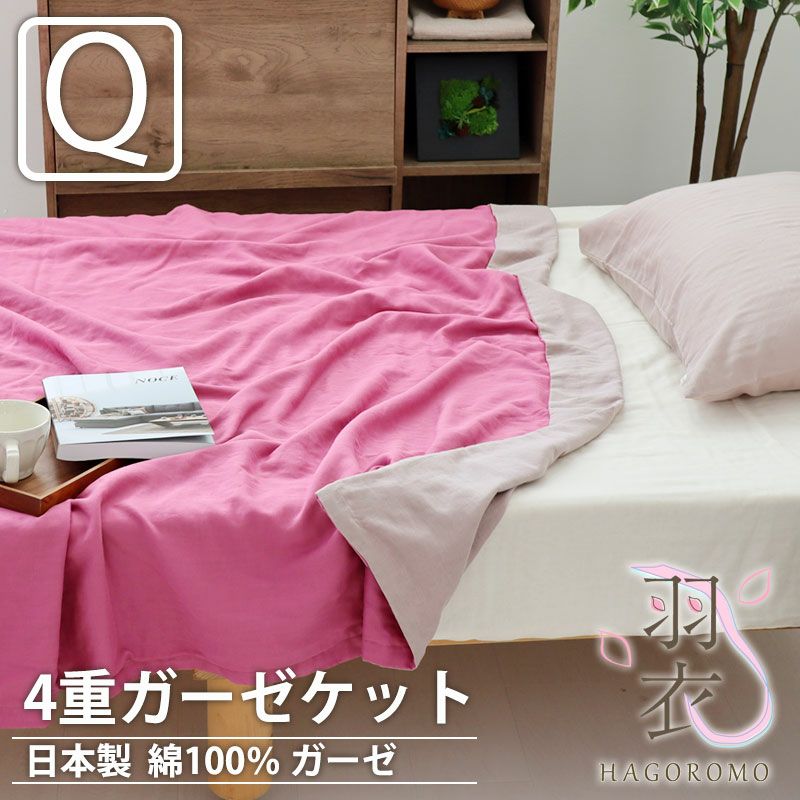 気分にあわせて使い分けできるリバーシブル仕様。オーガニックコットン100%のとっても軽く柔らかく極細の80番手糸を使用した肌触り。適度な保温性をもつダブルガーゼを2枚はり合わせた、4重ガーゼケット日本製のクイーンサイズ。