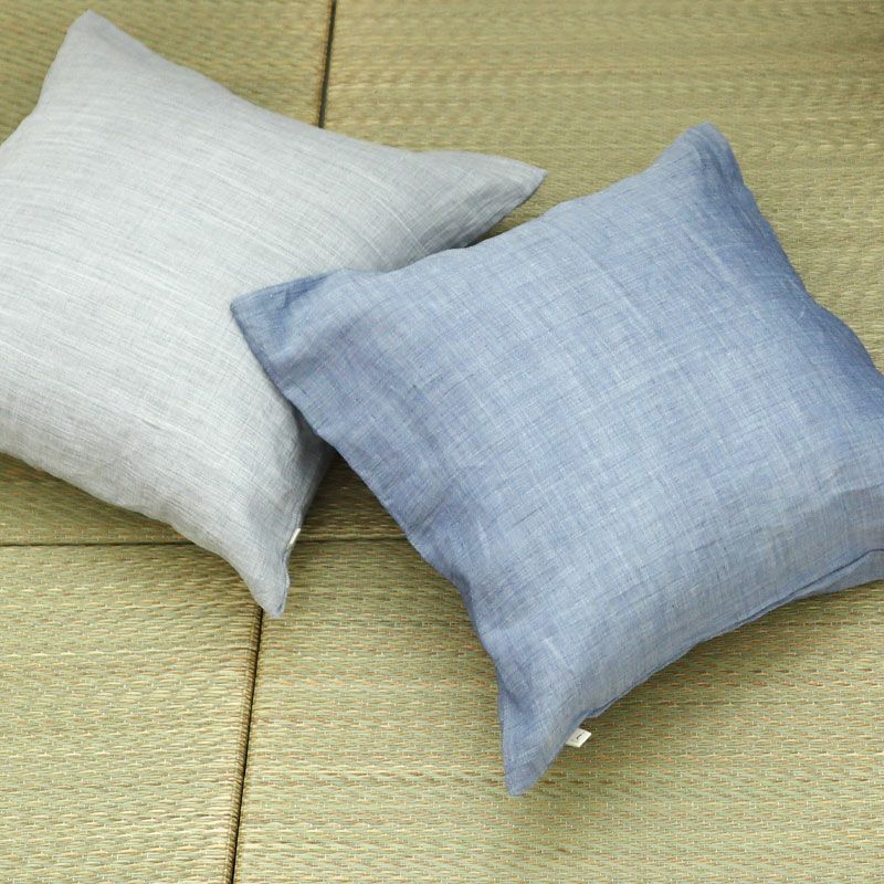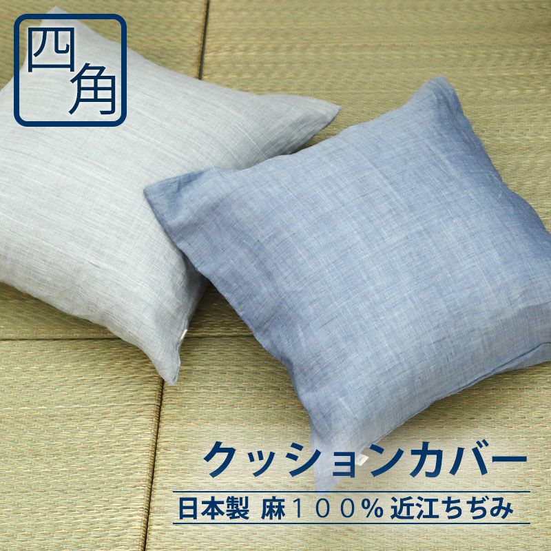 触れるたびひんやり涼しい、日本製のクッションカバー。近江ちぢみ麻100%で夏におすすめ。シボで肌にはりつかず、べたつかない。