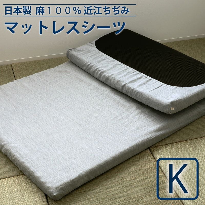寝返りするたび、ひんやり涼しい。シボで肌にはりつかない、夏におすすめの近江ちぢみ麻100%の日本製 マットレスシーツ