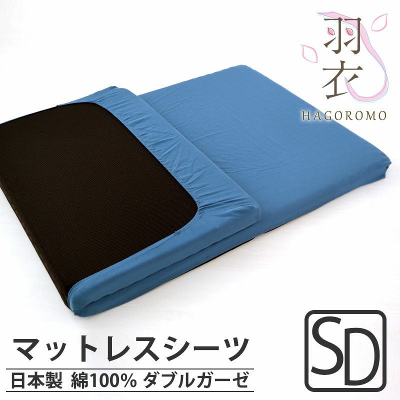 マチのあるマットレスにご使用いただける肌触りのなめらかなダブルガーゼのセミダブルサイズの日本製マットレスシーツ。洗うほどにふっくらとより柔らかくなじんでいく生地。