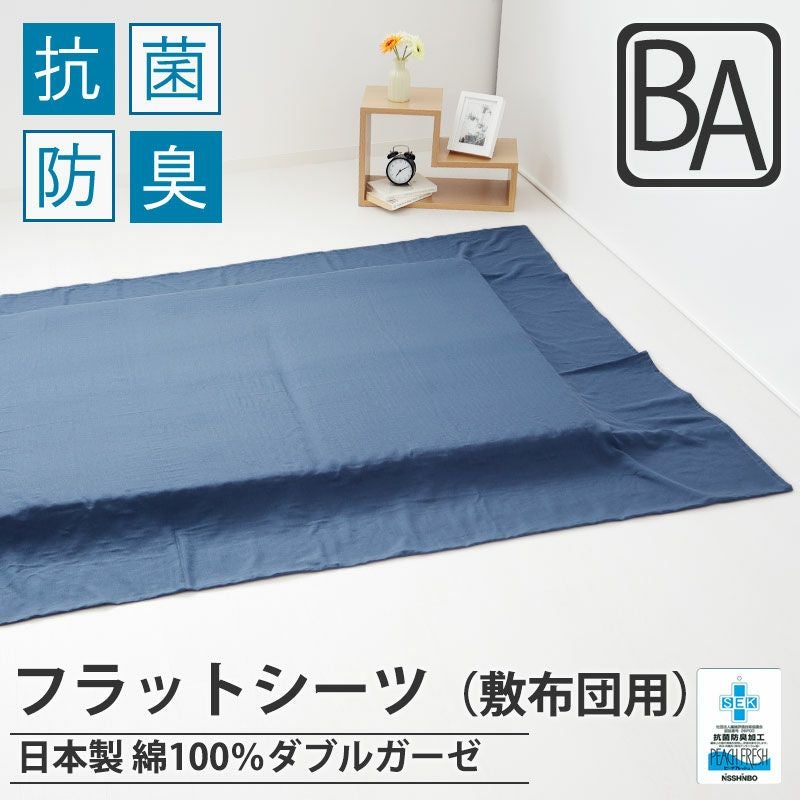 汗のニオイを元からたつ!抗菌防臭加工ピーチフレッシュ加工済 ふわふわダブルガーゼ綿100%日本製 フラットシーツ(敷き布団用)