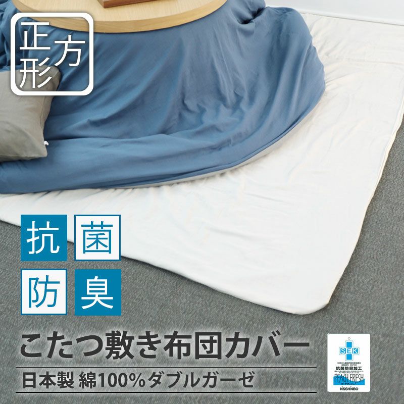 丸ごと覆えてこたつ敷き布団の汚れを防ぐ!抗菌防臭加工ピーチフレッシュ加工済 ふわふわダブルガーゼ綿100%日本製 こたつ敷き布団カバー正方形