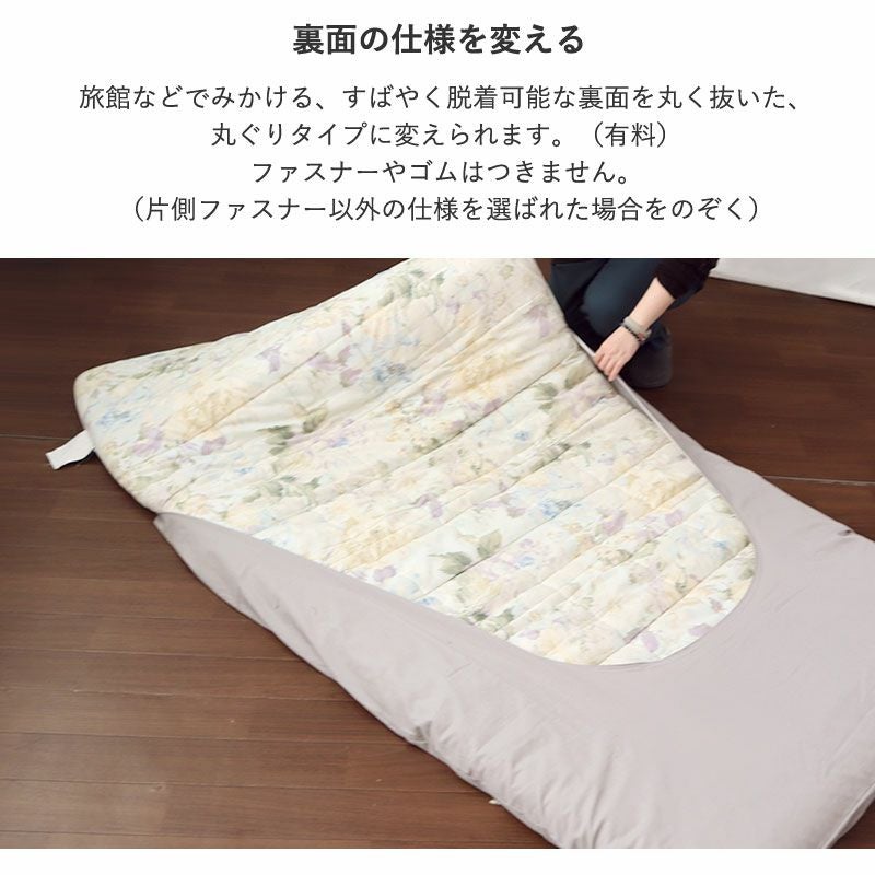 基本タイプは片側ファスナー付き、こたつ敷き布団を丸ごと覆えるカバーです。汚れから布団を守り、なかなか洗えない敷き布団もカバーなら気軽に洗えて清潔で安心